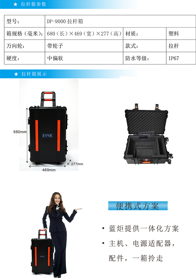● 三防一体手拎箱设计,防水,防尘,防震;