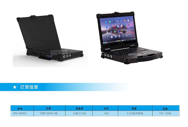 - 14寸国产化飞腾FT2000三防半加固笔记本电脑(EPG-R400F)
