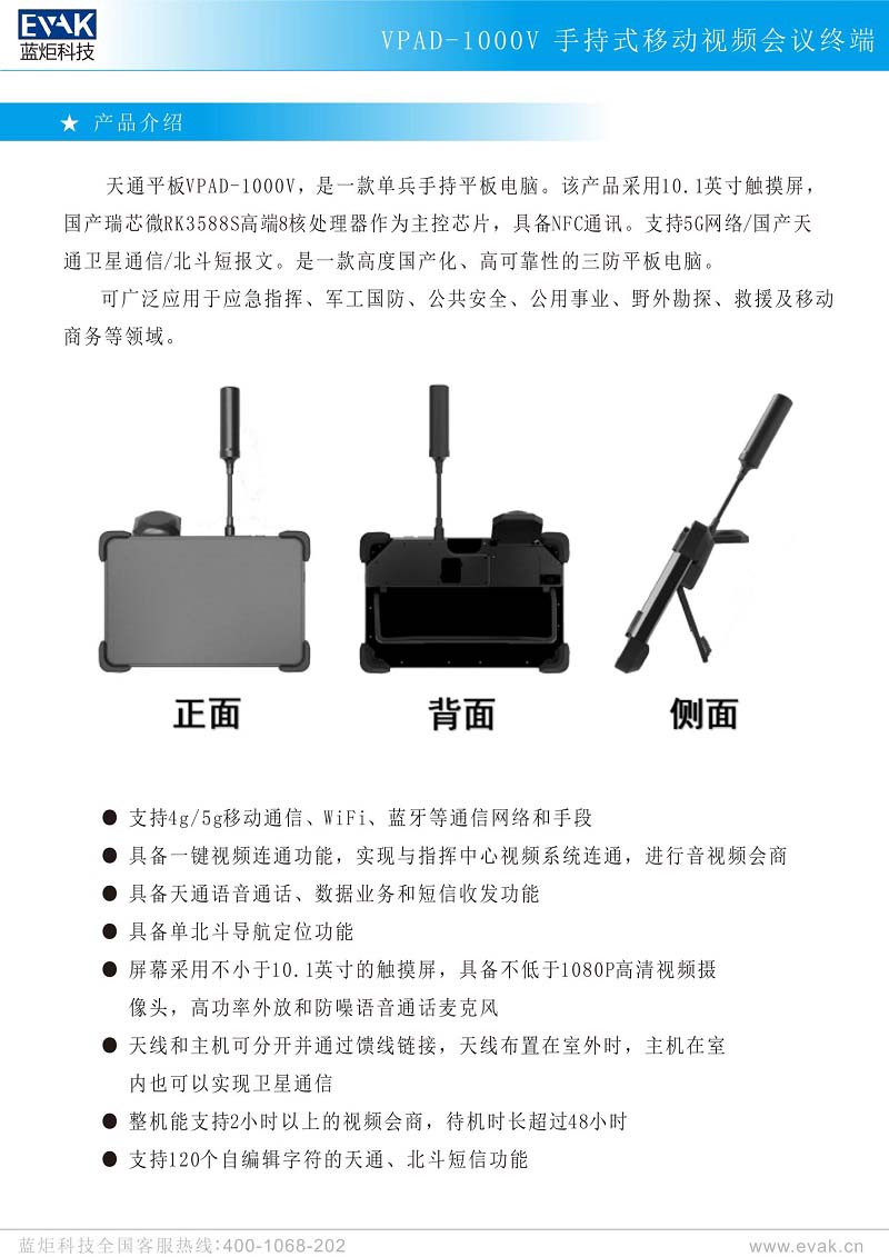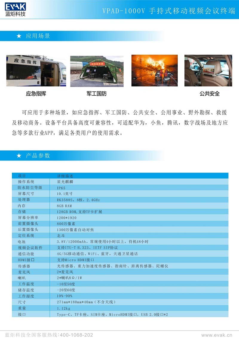 10.1寸天通移动单兵手持式应急视频会议平板终端 (VPAD-1000V)