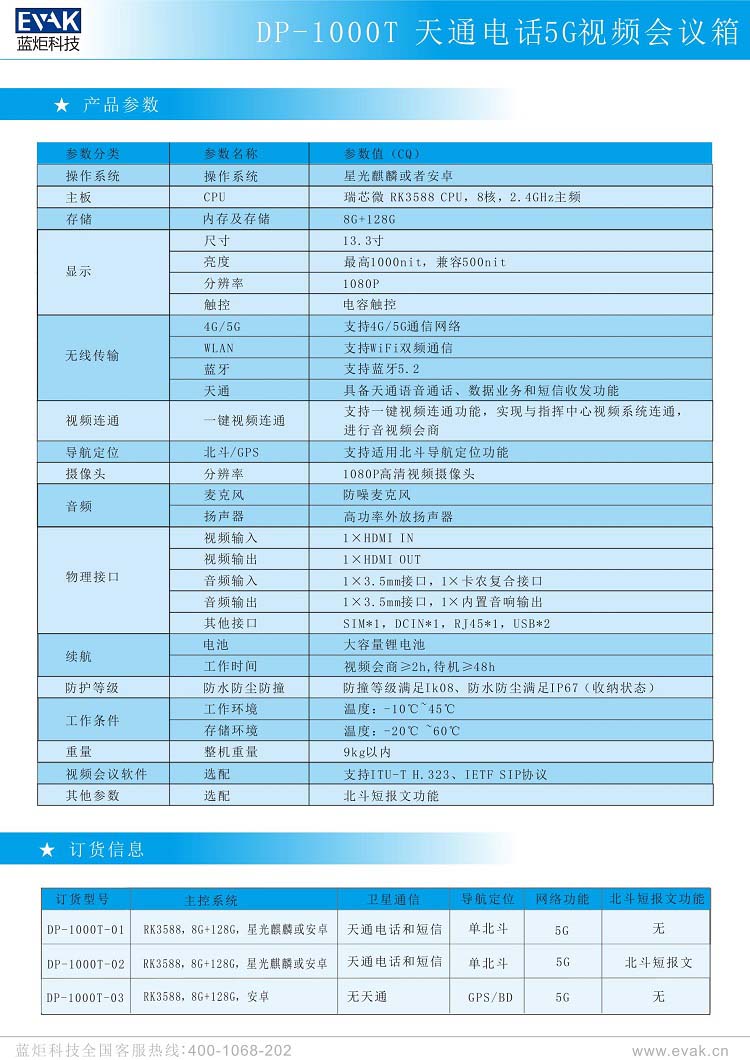 * 表示必填采购:13.3寸天通卫星通话5G视频会议终端语音综合调度台(DP-1000T)