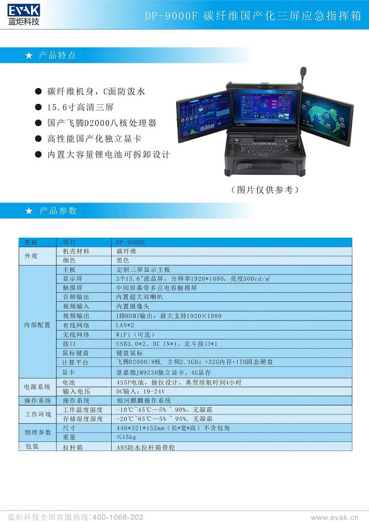 * 表示必填采购:15.6寸国产化飞腾D2000三屏移动应急视频通讯指挥箱(DP-9000F)