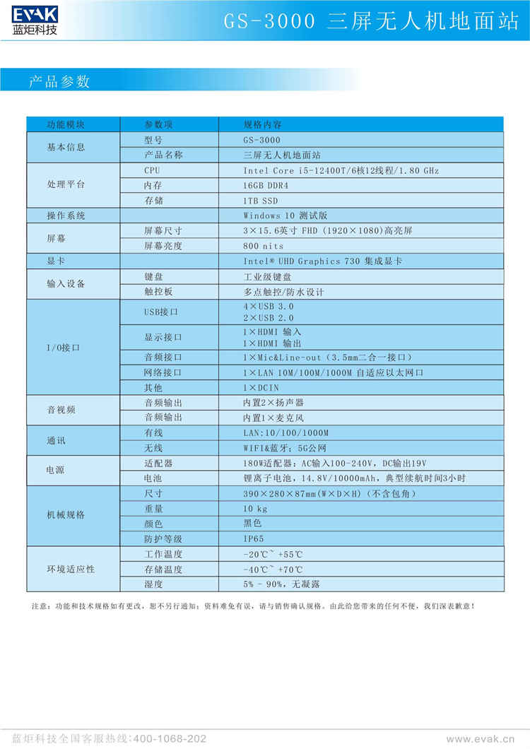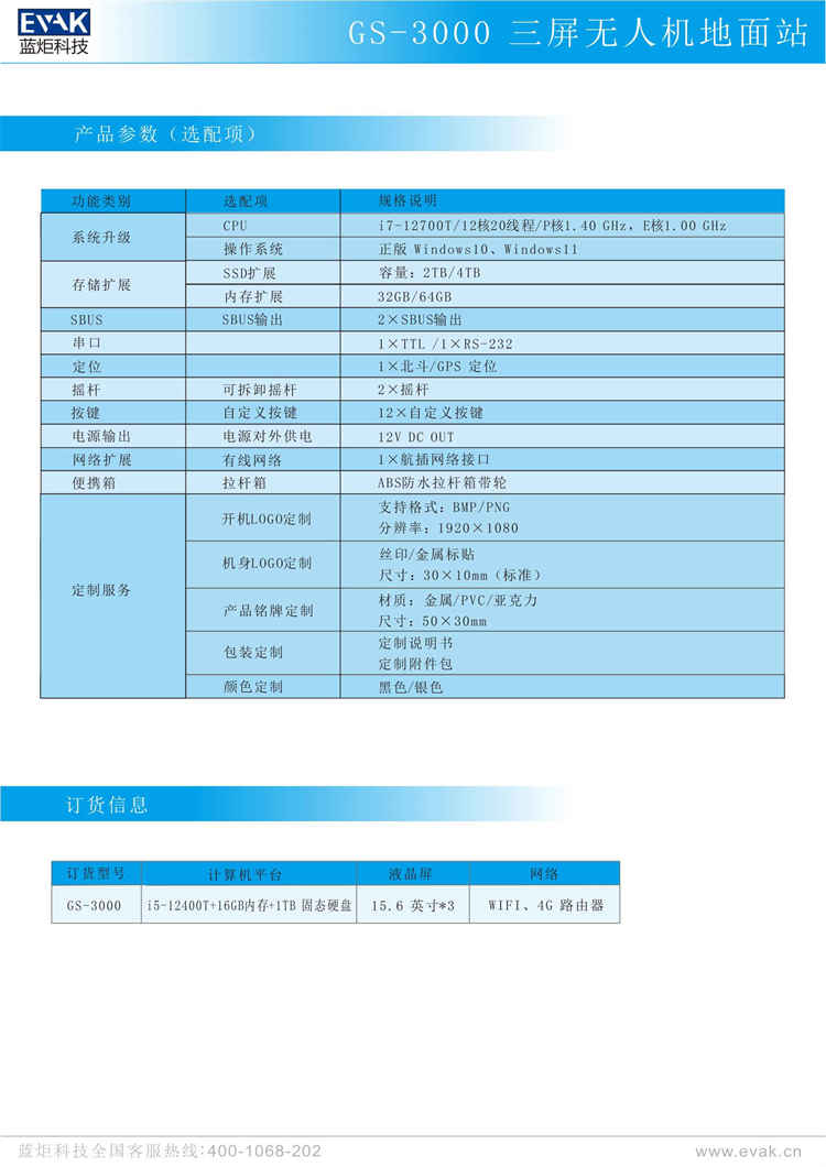 * 表示必填采购:15.6寸三屏无人机/无人船/无人车/水下机器人地面控制站(GS-3000)