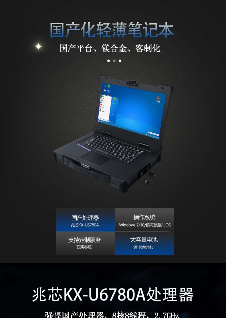 15.6寸国产化兆芯KX-U6780A三防加固笔记本电脑(EPU-5217Z)