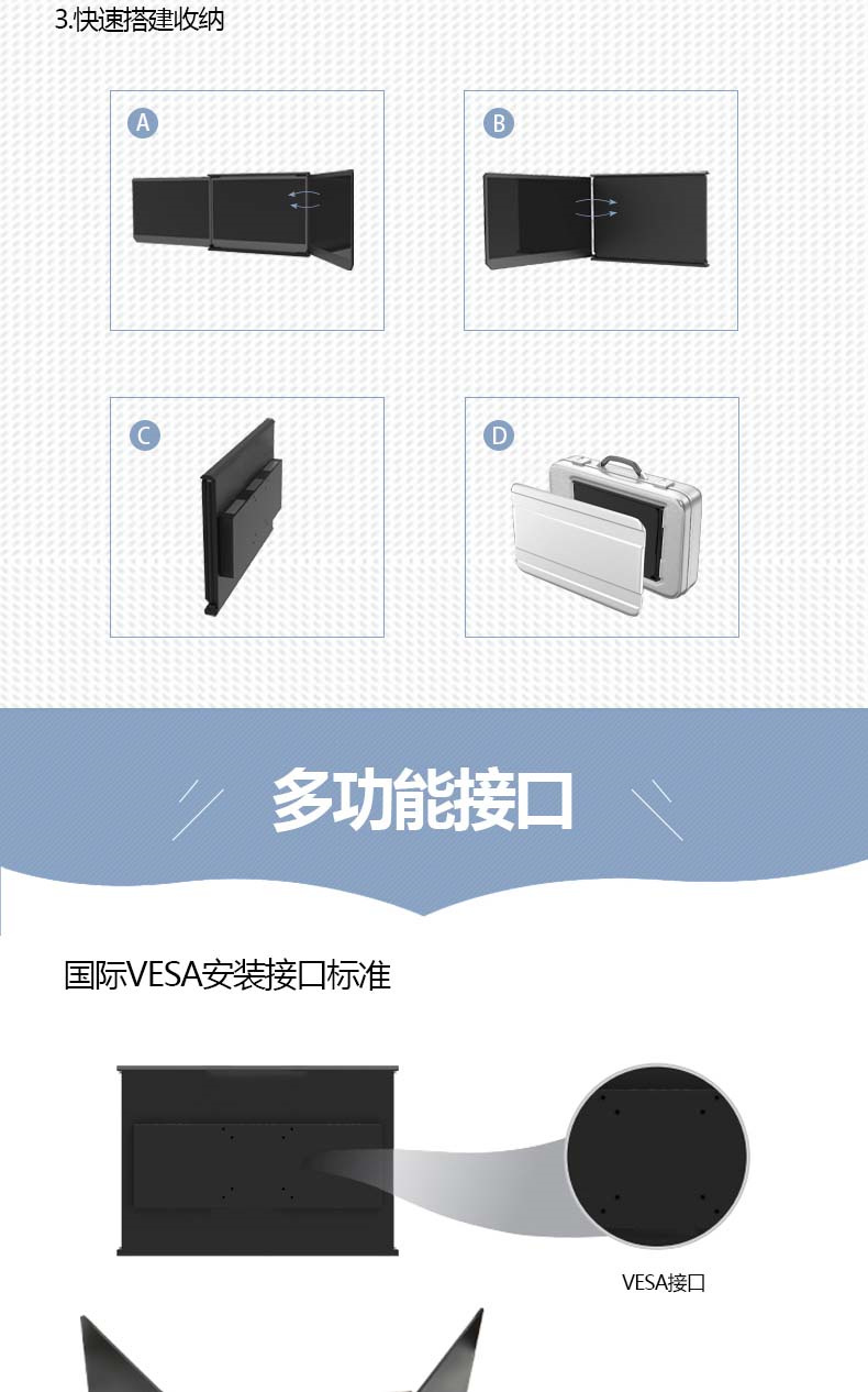 ● 纯平0°~180°无缝对接,便携式提手设计;