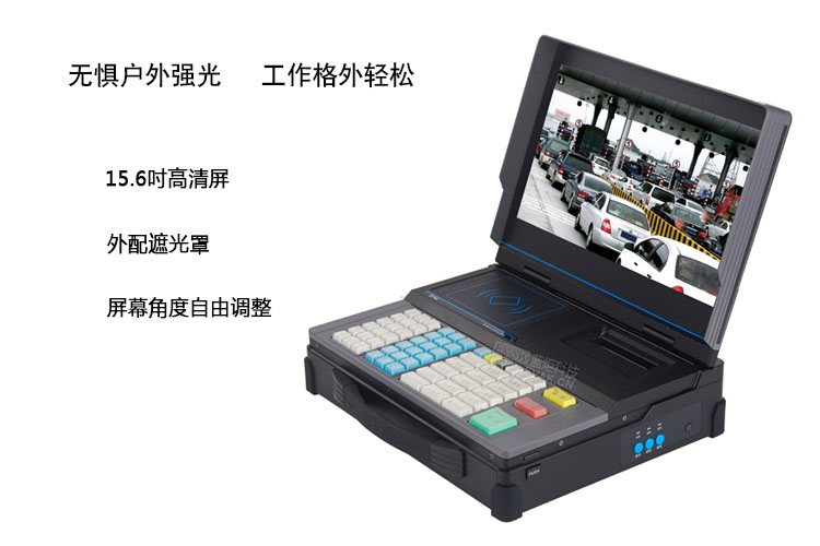 产品特点:专用于路桥便携式车道收费机,集成工控主机、防尘防水机械收费键盘、专用票据打印机、航天IC金卡读写器和预留多个接口等。其体积小、重量轻、便于携带,可快速替代出故障的车道进行收费或增加临时收费点。