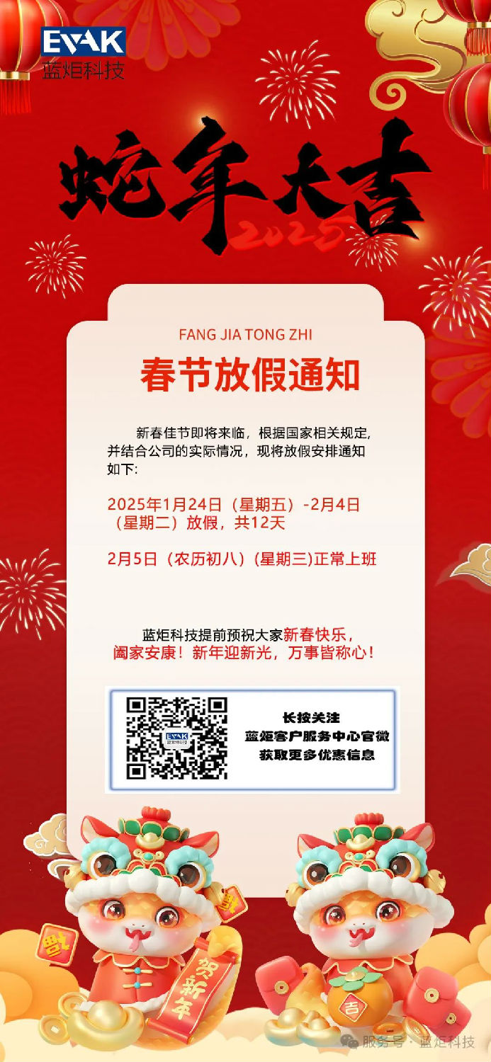 二、在2025年春节长假到来之际,感谢大家一如既往的支持和厚爱,在此向您致以节日的问候,祝您们新年快乐,万事如意,蛇年吉祥,阖家安康!