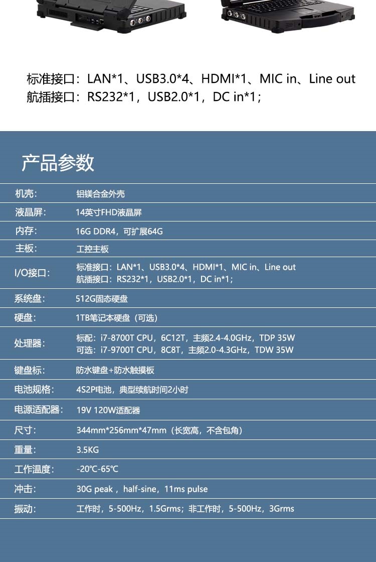 14寸军用三防全加固笔记本电脑I7-8700T/9700T(EPG-R400A)